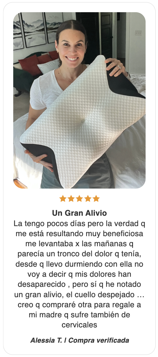 Las almohadas comunes no alinean correctamente el cuello con la columna vertebral, forzando a tu cuerpo a adoptar posiciones incómodas que generan molestias constantes.